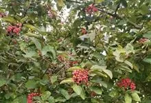 蝴蝶戏珠花 Miq.)是荚蒾科荚蒾属植物。落叶灌木,高达3米;当年小枝浅黄褐色。叶较狭,宽卵形或矩圆状卵形,有时椭圆状倒卵形。花序直径4-10厘米,外围有4-6朵白色、木型的不孕花。果实先红色后变黑色,…全部>>