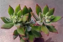 锦晃星是景天科、石莲花属多肉植物。多年生小灌木状多浆植物,灰绿色卵状倒披针形肥厚肉质叶轮状互生,全缘,椭圆尖头,长3-4厘米,宽2-2.5厘米,厚约1厘米,玲凉季节阳光下,叶端及上缘呈红色。…全部>>
