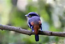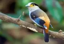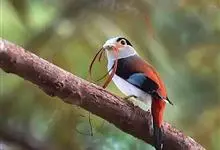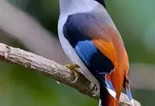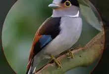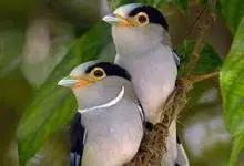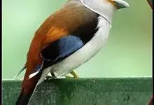 银胸丝冠鸟是雀形目阔嘴鸟科的鸟类,在全世界共分化为10个亚种。体长16-18厘米。嘴宽阔、天蓝色,基部橙色。鼻孔圆形具宽阔的黑色眉纹。上背烟灰色,下背至尾上覆羽栗色,两翅的翼缘白色,翼角羽缘缀浅灰蓝色,…全部>>