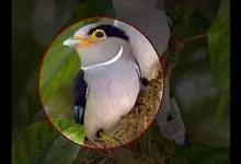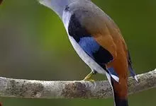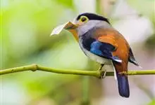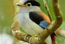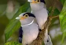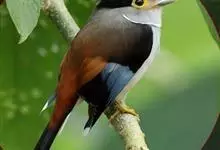 银胸丝冠鸟是雀形目阔嘴鸟科的鸟类,在全世界共分化为10个亚种。体长16-18厘米。嘴宽阔、天蓝色,基部橙色。鼻孔圆形具宽阔的黑色眉纹。上背烟灰色,下背至尾上覆羽栗色,两翅的翼缘白色,翼角羽缘缀浅灰蓝色,…全部>>