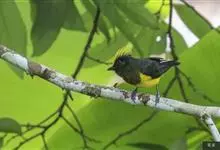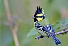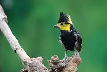 冕雀:共有4个亚种。体长20-21厘米,体重34-49克。具蓬松的黄色长型冠羽。雌鸟似雄鸟,但喉及胸深橄榄黄色,上体沾橄榄色。不会被误认的体大的黄色及黑色山雀。混群栖于原始林及次生林的林冠层,…全部>>