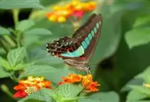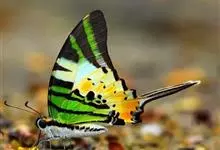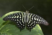 青带凤蝶Graphium sarpedon ,又名青凤蝶,是最普遍的中型凤蝶,飞行速度很快。青带凤蝶的翅膀中央有许多浅蓝色的斑点,很整齐地排列成一条直线。这些斑点由上而下逐渐变大,就像一条青色的带子。全部>>