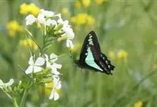 青带凤蝶Graphium sarpedon ,又名青凤蝶,是最普遍的中型凤蝶,飞行速度很快。青带凤蝶的翅膀中央有许多浅蓝色的斑点,很整齐地排列成一条直线。这些斑点由上而下逐渐变大,就像一条青色的带子。全部>>