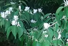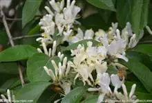山银花在华南地区野外山林生长。木质藤本,长2~5m。树皮黄褐色渐次变为白色,嫩时有短柔毛。叶对生,卵圆形至椭圆形,长4~8cm,宽3.5~5cm,上面绿色,主脉上有短疏毛,下面带灰白色,密生白色短柔…全部>>