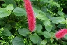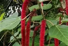 红穗铁苋菜:为大戟科、铁苋菜属植物,灌木,高0.5-3米。嫩枝被灰色短绒毛,毛逐渐脱落,小枝无毛。 花序色泽鲜艳,葇荑花序下垂,如狐狸尾状,雌花近卵形,长约0.8毫米,顶端急尖,具短毛;子房近球形,…全部>>