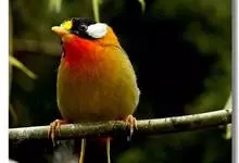 银耳相思鸟小型鸟类,体长14~18厘米。头顶黑色,耳羽银灰色,前额橙黄色;外侧飞羽橙黄色,基部朱红色,极为鲜艳、醒目。尾圆形,尾上、尾下覆羽朱红色,尾暗灰褐色,外侧尾羽橙黄色,其余上体橄榄绿或橄榄黄色。…全部>>