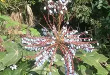 阔叶十大功劳 Carr. )是小檗科,十大功劳属常绿灌木或小乔木,高可达2米。叶长圆形,上面深绿色,叶脉显著,背面淡黄绿色,网脉隆起,小叶无柄,基部一对小叶倒卵状长圆形,总状花序簇生,…全部>>