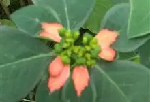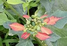 猩猩草:常绿或半常绿灌木,盆栽时株高0.5米-2米,在亚热带地区可长到6米以上。茎直立而光滑,单叶互生,卵状椭圆形至阔披针形,具不规则的深缺刻。长10-15厘米。花小,有蜜腺,排列成密集的伞房花序。…全部>>