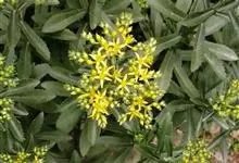 费菜 ’t Hart),又名土三七、三七景天、景天三七等,为景天科费菜属多年生草本植物。费菜根状茎短,有1-3条茎,直立。叶互生,狭披针形、椭圆状披针形至卵状倒披针形;叶坚实,近革质。聚伞花序有多花,…全部>>