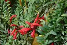 毛萼口红花,多年生藤本植物。植株蔓生,枝条下垂,茎绿色。喜明亮的散射光环境。生长适温21~26℃,要求排水良好、略带酸性的土壤。原产马来半岛及爪哇等地。全部>>