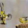 金翅雀:是雀形目雀科金翅雀属的小型鸟类。体长12-14厘米。嘴细直而尖,基部粗厚,头顶暗灰色。背栗褐色具暗色羽干纹,腰金黄色,尾下覆羽和尾基金黄色,翅上翅下都有一块大的金黄色块斑,…全部>>