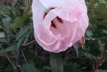 木芙蓉,锦葵科木槿属落叶灌木或小乔木。小枝上有细绒毛;叶片为卵状心形,托叶为披针形,常早落;花单生,花萼为钟形,花冠初为白色或淡红色,后逐渐变为深红色;果实为扁球形,有淡黄色的毛附着。花期8到10月。…全部>>