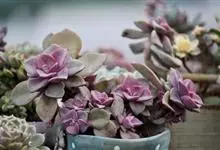 紫珍珠是景天科石莲花属的多年生肉质草本植物。植株中小型;叶片肉质,匙形,呈莲座状紧密排列;叶片粉紫色,叶缘呈粉白色,光照充足时颜色亮丽,不足时叶色会呈现深绿色或灰绿色,叶面光滑,被轻微白粉,…全部>>