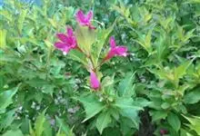 红王子锦带花是忍冬科锦带花属的落叶开张性灌木。株高1 -2米;嫩枝淡红色,老枝灰褐色;单叶对生,呈椭圆形,先端渐尖,叶缘有锯齿,红枝及叶脉具柔毛;花冠漏斗状钟形,花冠筒中部以下变细,聚伞花序,…全部>>