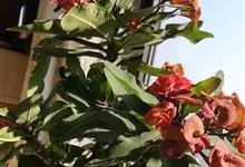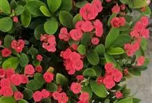 铁海棠为大戟科大戟属蔓生灌木植物;茎多分枝,具纵棱,呈旋转状;叶互生,通常集中于嫩枝上;每个花序基部边缘具微小的红色尖头;苞叶先端圆且具小尖头,无柄,上面鲜红色,下面淡红色;苞片丝状;子房光滑无毛,…全部>>