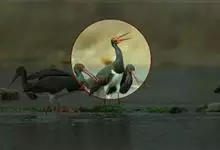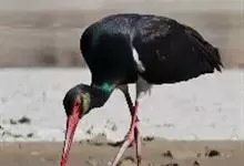 黑鹳是鹳形目鹳科鹳属鸟类,俗称乌鹳、钢鹳、老鹤。黑鹳头、颈和脊均呈黑褐色,故名黑鹳。黑鹳上体羽黑色、并带有绿紫色金属光泽,胸腹部羽白色;嘴、腿均红色;两性相似;成鸟嘴长而直,基部较粗,…全部>>
