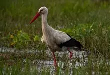 白鹳,是鹳形目鹳科鹳属鸟类。白鹳曾确定为3个亚种:指名亚种、中亚亚种和东方亚种。其体长约111厘米。嘴形直、粗厚而侧扁;体羽除飞羽黑色具铜绿色金属光泽外,余部均为白色;眼周裸区、脚、趾红色,嘴黑色。…全部>>