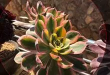 清盛锦别名艳日辉、夕映,为景天科莲花掌属多年生常绿肉质植物。原生地位于大西洋加那利群岛。 植株呈多分枝的灌木状,倒卵形肉质叶在枝头组成较小的莲座状叶盘,叶的中央淡绿色与杏黄色间杂,边缘有红色斑块,…全部>>