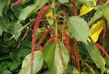 红穗铁苋菜:为大戟科、铁苋菜属植物,灌木,高0.5-3米。嫩枝被灰色短绒毛,毛逐渐脱落,小枝无毛。 花序色泽鲜艳,葇荑花序下垂,如狐狸尾状,雌花近卵形,长约0.8毫米,顶端急尖,具短毛;子房近球形,…全部>>