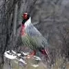 血雉雉科血雉属鸟类,别名血鸡、松花鸡,血雉的雄鸟大覆羽、尾下覆羽、尾上覆羽、脚、头侧、腊膜为红色,故称血雉。其别名甚多,各地皆异。在甘肃,因其胸侧和翅上覆羽沾绿,被称为“绿鸡”;因其羽毛形似柳叶,…全部>>