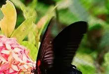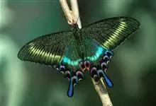 美凤蝶又名多型蓝凤蝶、大凤蝶,是鳞目凤蝶科凤蝶属动物。美凤蝶雄蝶无尾突,翅黑色,正面各翅室中部有深色条纹,分布蓝色鳞片,反面前后翅基部有红斑,后翅臀角有环状红斑。雌蝶具多型,前翅浅灰色,外缘和翅脉黑色,…全部>>