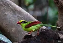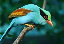 蓝绿鹊:中型鸟类,共有5个亚种。体长36-38厘米。尾长,嘴、脚红色。通体羽色主要为草绿色,宽阔的黑色贯眼纹向后延伸到后颈,在绿色的头侧极为醒目。两翅栗红色,内侧飞羽具黑色次端斑和白色尖端。尾绿色,…全部>>