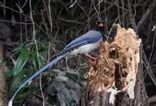 红嘴蓝鹊,别名山鹊、长尾鹊,是鸦科蓝鹊属的一种观赏性较强的大型鸣禽。该物种为体长54~65cm,头、颈、喉和胸黑色,头顶至后颈有一块白色至淡蓝白色或紫灰色块斑,其余上体紫蓝灰色或淡蓝灰褐色。尾长呈凸状,…全部>>