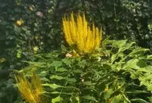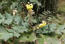 十大功劳 Fedde),小檗科十大功劳属常绿灌木植物。叶子较大且较多,呈椭圆形,绿色,表面光滑无毛,叶柄较长;花朵较小,呈多边形,黄色,花瓣对称分布,表面有绒毛;果实呈圆形,褐色,…全部>>