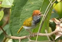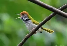 黑喉缝叶莺:体长11.5厘米,是一种小型的顶冠棕色、腹部白色的莺。尾甚长而常上翘,臀黄色,具特征性的偏黑色喉,上体橄榄绿色,头侧灰色。雌鸟色暗,头少红色且喉少黑色。与长尾缝叶莺的区别在后顶冠亦为棕色,…全部>>
