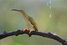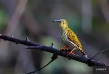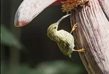 纹背捕蛛鸟:为太阳鸟科捕蛛鸟属的鸟类。是太阳鸟科中体型较大的一种,体重25-45克,体长160-210毫米。嘴粗长而尖且向下弯曲。上体橄榄黄色具黑色中央斑纹。下体淡黄白色满布黑色纵纹,尾具黑色次端斑。…全部>>