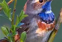 蓝点颏亦称“蓝喉歌鸲”,通称蓝靛颏儿。身体大小和麻雀相似,体长12-13厘米,体重17-18克。头部、上体主要为土褐色。眉纹白色。尾羽黑褐色,基部栗红色。颏部、喉部辉蓝色,下面有黑色横纹。下体白色。…全部>>