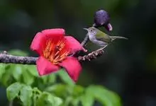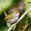 普通缝叶莺,是雀形目鹅科莺亚科缝叶莺属一种。体长10-14厘米,体重7-10克,雄鸟前额棕红,头顶至枕棕橄榄褐,上体橄榄绿染黄,飞羽及尾羽暗褐;繁殖期雄鸟的中央尾羽特形延长,下体淡皮黄白色。…全部>>