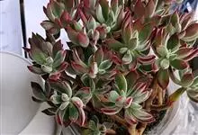 锦晃星是景天科、石莲花属多肉植物。多年生小灌木状多浆植物,灰绿色卵状倒披针形肥厚肉质叶轮状互生,全缘,椭圆尖头,长3-4厘米,宽2-2.5厘米,厚约1厘米,玲凉季节阳光下,叶端及上缘呈红色。…全部>>