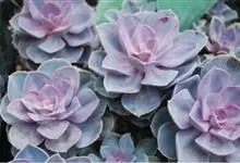 紫珍珠是景天科石莲花属的多年生肉质草本植物。植株中小型;叶片肉质,匙形,呈莲座状紧密排列;叶片粉紫色,叶缘呈粉白色,光照充足时颜色亮丽,不足时叶色会呈现深绿色或灰绿色,叶面光滑,被轻微白粉,…全部>>