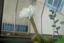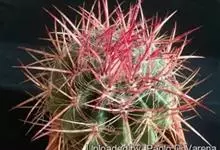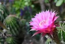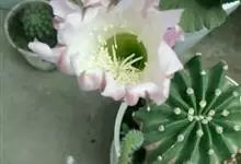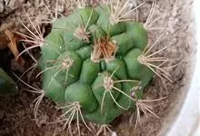 白雪光为南国玉属多年生肉质植物。茎球形或稍扁圆形,高约10厘米左右,单生,直径为6至10厘米,有小疣状突起,呈螺旋状排列,球体密生3至5毫米的放射形白刺,中心刺淡黄色。花顶生,漏斗状,绯红色,花从白…全部>>