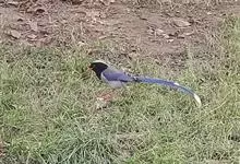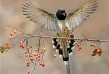 红嘴蓝鹊,别名山鹊、长尾鹊,是鸦科蓝鹊属的一种观赏性较强的大型鸣禽。该物种为体长54~65cm,头、颈、喉和胸黑色,头顶至后颈有一块白色至淡蓝白色或紫灰色块斑,其余上体紫蓝灰色或淡蓝灰褐色。尾长呈凸状,…全部>>