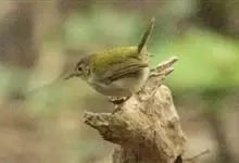 普通缝叶莺,是雀形目鹅科莺亚科缝叶莺属一种。体长10-14厘米,体重7-10克,雄鸟前额棕红,头顶至枕棕橄榄褐,上体橄榄绿染黄,飞羽及尾羽暗褐;繁殖期雄鸟的中央尾羽特形延长,下体淡皮黄白色。…全部>>