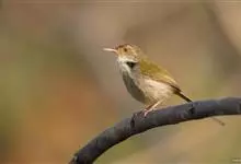 普通缝叶莺,是雀形目鹅科莺亚科缝叶莺属一种。体长10-14厘米,体重7-10克,雄鸟前额棕红,头顶至枕棕橄榄褐,上体橄榄绿染黄,飞羽及尾羽暗褐;繁殖期雄鸟的中央尾羽特形延长,下体淡皮黄白色。…全部>>