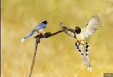 红嘴蓝鹊,别名山鹊、长尾鹊,是鸦科蓝鹊属的一种观赏性较强的大型鸣禽。该物种为体长54~65cm,头、颈、喉和胸黑色,头顶至后颈有一块白色至淡蓝白色或紫灰色块斑,其余上体紫蓝灰色或淡蓝灰褐色。尾长呈凸状,…全部>>