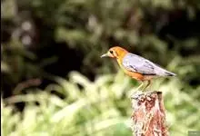 橙头地鸫是鸫科、地鸫属中型鸟类,体长18-22厘米。整个头、颈和下体橙栗色,其余上体包括两翅和尾蓝灰色或橄榄灰色,翅上多具白色翅斑。虹膜褐色或棕褐色,嘴黑褐色或黑色,脚橙黄色或肉黄色。特征极明显。…全部>>
