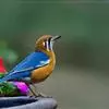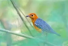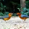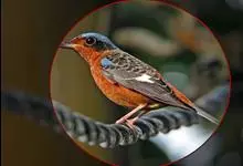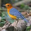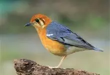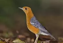 橙头地鸫是鸫科、地鸫属中型鸟类,体长18-22厘米。整个头、颈和下体橙栗色,其余上体包括两翅和尾蓝灰色或橄榄灰色,翅上多具白色翅斑。虹膜褐色或棕褐色,嘴黑褐色或黑色,脚橙黄色或肉黄色。特征极明显。…全部>>