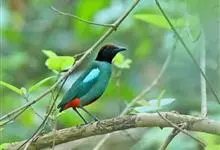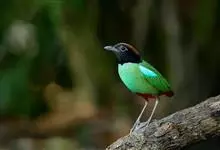 绿胸八色鸫:是雀形目八色鸫科的鸟类,共有12个亚种。体长为16-18厘米,体重65-69克。体型圆胖,尾短,腿长。头黑,上体绿色,两翼深色而具白色斑纹,头顶至后枕深褐,胸及腹部苹果绿,臀亮红。…全部>>