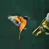 灰喉山椒鸟:共有8个亚种。体长18-22厘米。雄鸟头部和背亮黑色,腰、尾上覆羽和下体朱红色,翅黑色具一大一小的两道朱红色翼斑。中央尾羽黑色,外侧尾羽基部黑色,端部红色。…全部>>