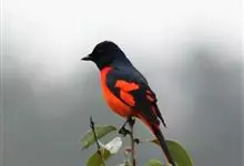 灰喉山椒鸟:共有8个亚种。体长18-22厘米。雄鸟头部和背亮黑色,腰、尾上覆羽和下体朱红色,翅黑色具一大一小的两道朱红色翼斑。中央尾羽黑色,外侧尾羽基部黑色,端部红色。…全部>>