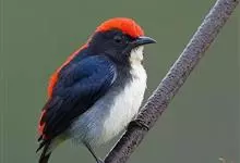 朱背啄花鸟:体重6-8克,体长81-97毫米。是一种小型的黑色及红色啄花鸟。雄鸟顶冠、背及腰猩红色,两翼、头侧及尾黑,两胁灰,下体余部白色。雌鸟上体橄榄色,腰及尾上覆羽猩红,尾黑。亚成鸟清灰色,嘴橘黄,…全部>>