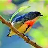 红胸啄花鸟:体重5-10克,体长60-92毫米。体形纤小。雄鸟上体呈辉亮的金属绿色;下体棕黄,胸部具一朱红色块斑,极易与其他啄花鸟区别。雌鸟上体呈橄榄绿,下体棕黄色。虹膜褐色,嘴褐黑色或角灰色,…全部>>
