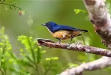黄腹啄花鸟:体重11-16克,体长104-117毫米。是一种体型大,下腹部为艳黄色的啄花鸟,雄鸟特征为头黑色,喉部有白色纵斑、喉侧及上体成对比,两翅和尾黑色,外侧尾羽内翈具白色斑块。其余下体淡黄色。…全部>>