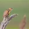 金头扇尾莺体小而具褐色纵纹的莺。嘴细长,略向下弯;翼短,体型娇小,尾长。下体皮黄,喉近白,尾深褐,尾端皮黄。雌雄羽色相近,羽色单调。繁殖期雄鸟顶冠亮金色,腰褐色。雌鸟及非繁殖期雄鸟头顶密布黑色细纹,…全部>>