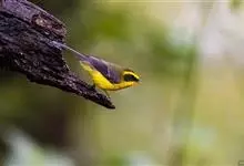 金头伪缝叶莺:体长10-12厘米,是一种体型小的棕顶冠、黄色腹森林莺类。头顶亮黄色,具明显的黄色眉纹,头侧、后颈和颈侧暗灰色,上体橄榄绿色,颏、喉及上胸部灰白,下胸及腹部为鲜艳黄色。两翅和尾褐色,羽…全部>>