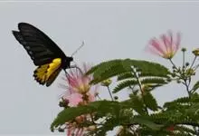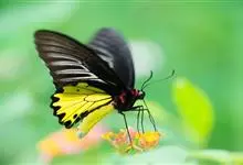 金裳凤蝶是凤蝶科、裳凤蝶属的动物。金裳凤蝶身体呈黑色,头、颈和胸侧有红毛,腹部有黑黄两色相间条纹,雄蝶前翅黑色,具黑天鹅绒光泽,各脉两侧灰白色,后翅金黄色,各室外缘有等腰三角形黑斑1枚,斑内侧有晕,…全部>>
